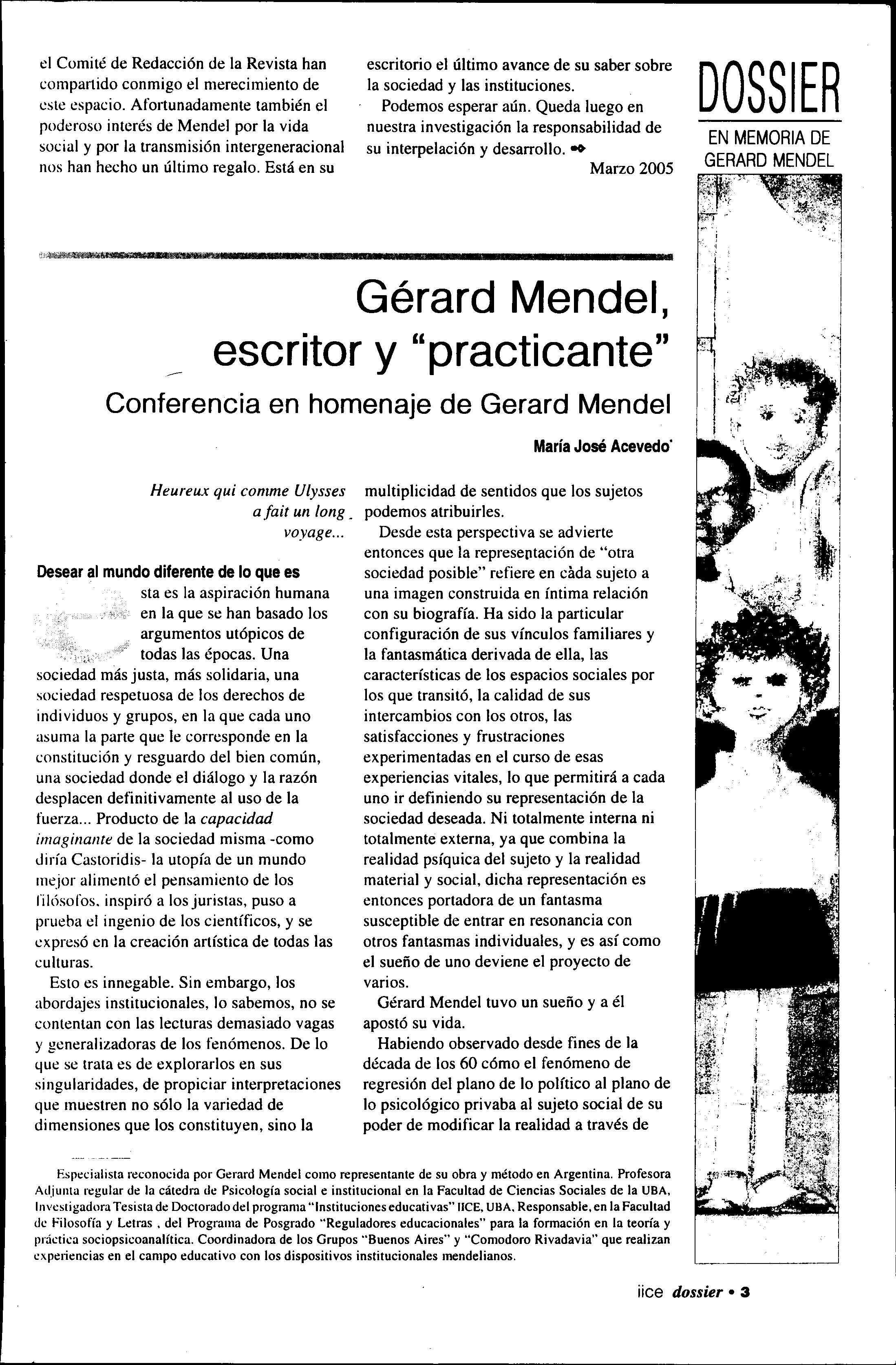 Dossier: "En memoria de Gérard Mendel"