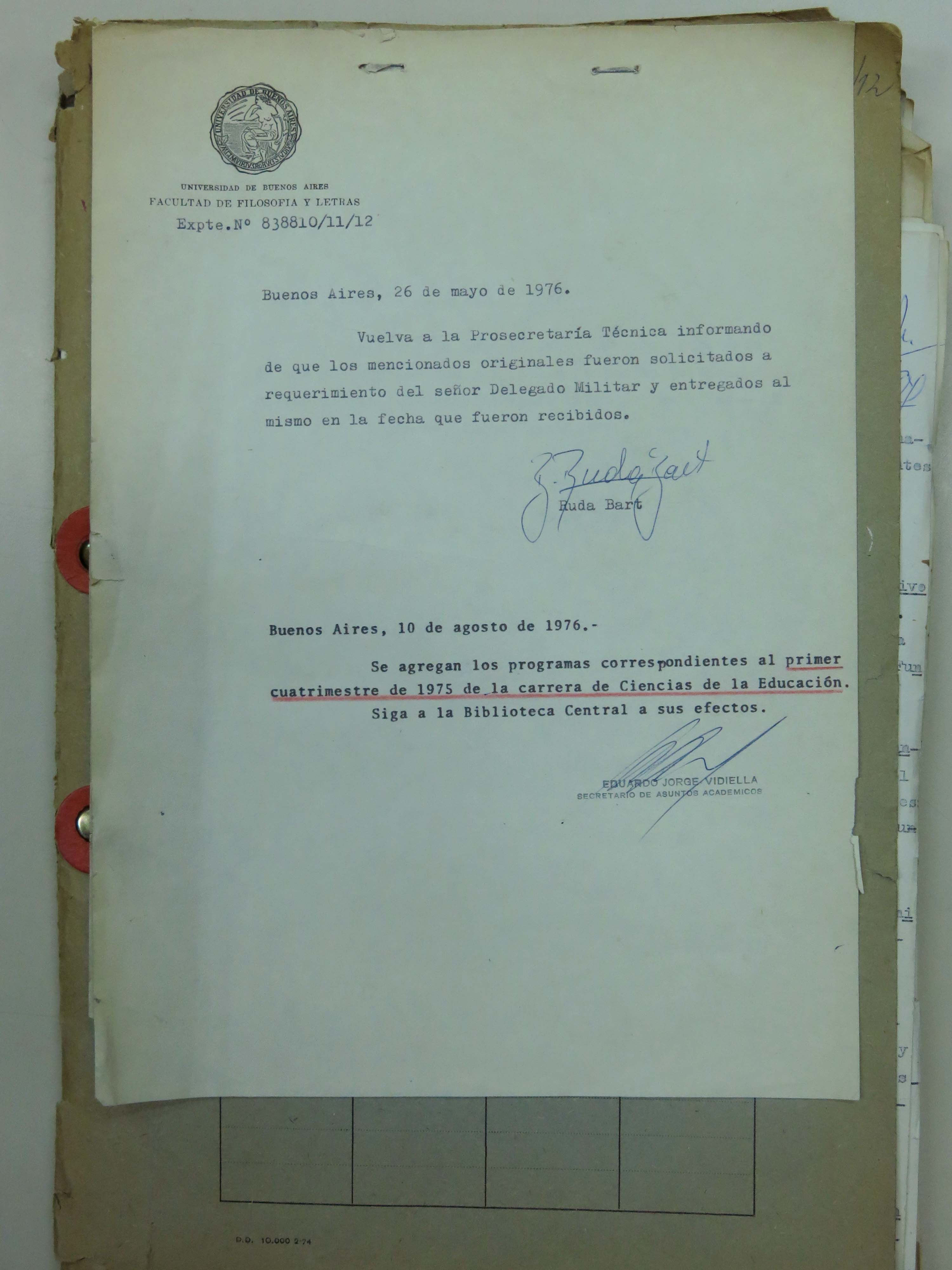 Publicación: Expediente a pedido del delegado militar